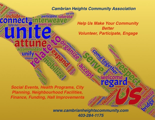 The Cambrian Heights Community Association is a group of volunteers who live in the community and who strive to create activities and events to bring residents closer together. They care for and manage the community hall and skating arena. They provide an opportunity for residents to speak out on issues that are of concern to them, and to celebrate community milestones.