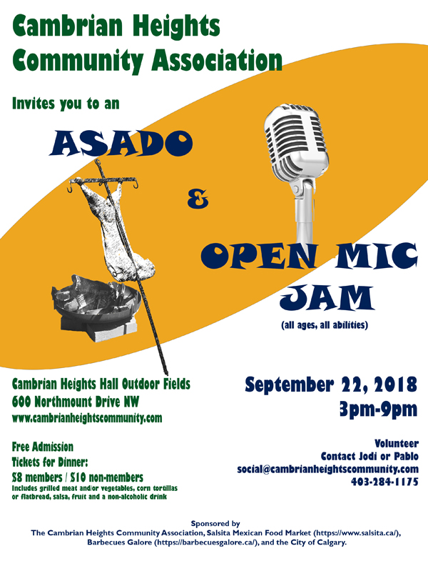 A shout-out to our wonderful sponsors and donors: Volunteers from the Cambrian Heights Community Association, Salsita Mexican Food Market, Barbecues Galore, Glenn Pickard and City of Calgary