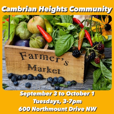 Looking to fill your fridge and pantry with fresh, local goodness? From May 27 to October 7, Cambrian Heights Community Markets – featuring premier farmers’ market vendors by invitation only – are happening Tuesdays from 3 – 7 p.m. at 600 Northmount Drive NW.