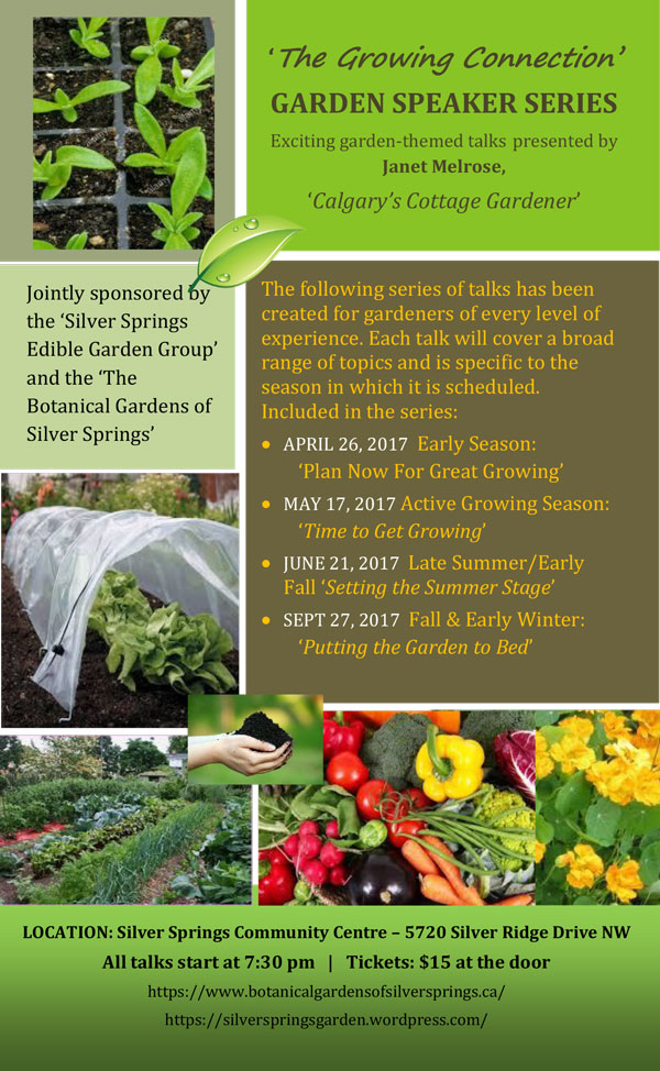 Exciting garden-themed talks presented by Janet Melrose, “Calgary’s Cottage Gardener”.
