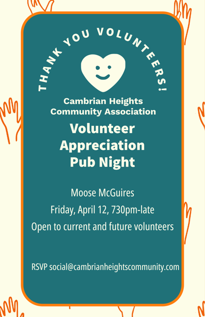 Help us make this event a success by spreading the word to your neighbors and friends in the Cambrian Heights and Rosemont areas. Share this post on social media, and let’s get everyone involved in making our community cleaner and greener!