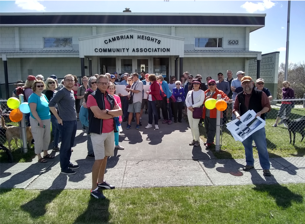 On a positive note the first Jane’s Walk held in our Community on May 5 was a resounding success with over 50 attendees with children and dogs walking the neighbourhood. A picture of the attendees leaving the Community Hall is shown. Thanks to organizers Pablo Policzer and Jodi Dixon everyone learned of the community history and met some of the original homeowners within Cambrian Heights dating back to 1956. At the end everyone returned to the Community Hall for refreshments and conversations with new friends.