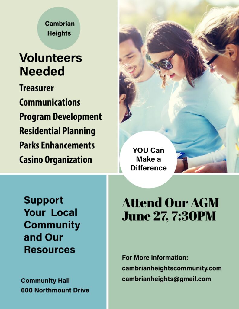 Attend our AGM to learn more – June 27, 7:30 PM at CHCA Community Hall, 600 Northmount Drive NW.